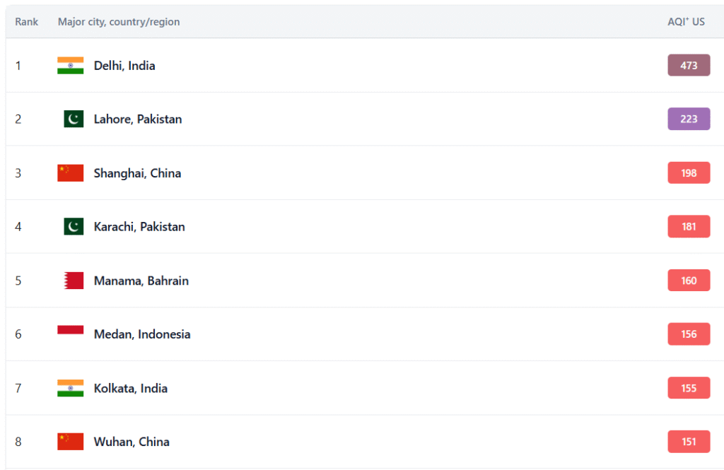 Recent 2025 reports place Delhi once again at the top of India’s most polluted cities. Others like Ghaziabad, Bhiwadi, Faridabad, Lucknow, and Noida continue to remain in the “very poor” or “severe” category for most of the winter.
