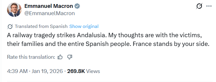 Spain’s King and Queen expressed deep sorrow over the tragedy and offered condolences to the families of the victims. Messages of sympathy were also issued by French President Emmanuel Macron and European Commission President Ursula von der Leyen, expressing solidarity with the Spanish people.